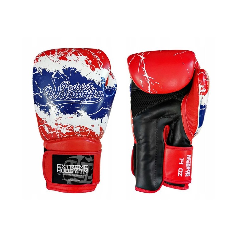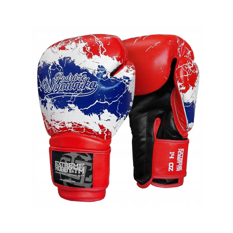 Profesjonalne rękawice bokserskie EXTREME HOBBY. Wykonane ze skóry naturalnej o wyjątkowej trwałości. Doskonale sprawdzą się zarówno w profesjonalnych walkach w ringu, podczas sparingów czy na treningach sztuk walki.
