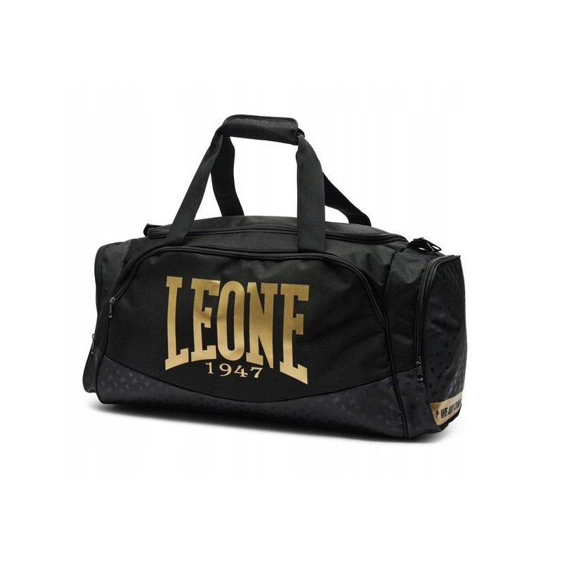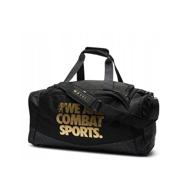 Torba sportowa model DNA. Pojemna 75-litrowa torba z linii DNA, charakteryzująca się dużymi złotymi nadrukami oraz 3 (trzema) niezwykle pojemnymi kieszeniami bocznymi zapinanymi na zamek, a także dużą przegrodą centralną. Idealna do przenoszenia sprzętu na trening sportów walki , siłownię.