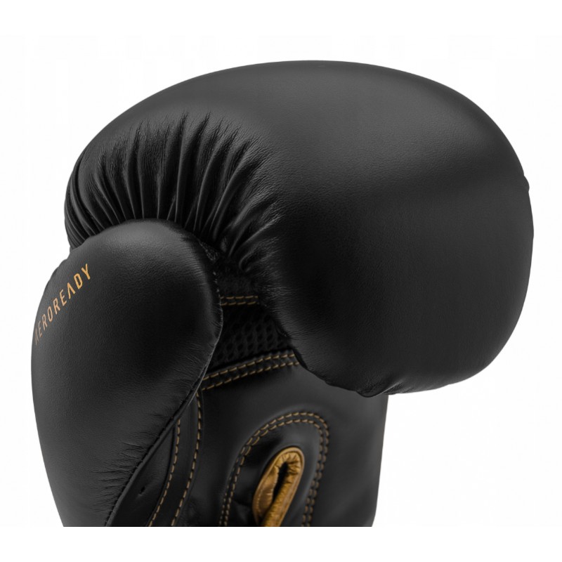 Rękawice bokserskie wykonane ze skóry ekologicznej PU. Wyposażone są w kilkuwarstwową wyściółkę dla lepszej amortyzacji uderzeń. Dodatkowo technologia AEROREADY zapewnia odprowadzenie wilgoci podczas użytkowania. Wewnątrz rękawic nylonowa wyściółka zapewniająca wygodne dopasowanie. Wypełnione absorbującą uderzenia pianką, posiadają także otwory umożliwiające optymalną wentylację. Zapięcie na rzep o szerokości 7,5 cm.