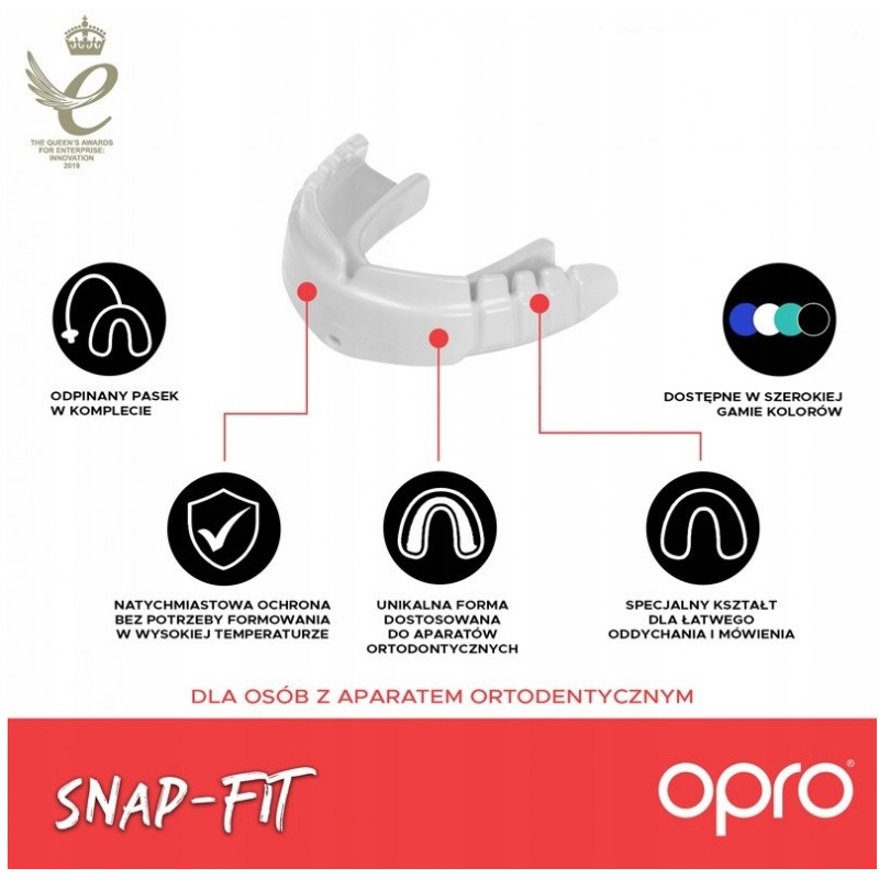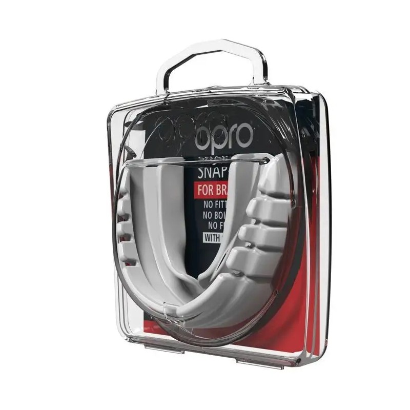 Ochraniacz na zęby to prawdopodobnie najważniejszy element Twojego wyposażenia na trening. A także najmniejszy, dlatego najłatwiej go zgubić lub nawet... zapomnieć. Dobrze jest mieć zapas. Tutaj na scenę wchodzi ochraniacz Opro Ochraniacz na Zęby Snap Fit Biały. Dla wszystkich trenujących sporty walki, którzy noszą aparat na zęby. Wiesz co jest w nim najlepsze? Nie musisz go formować, dzięki rewolucyjnej konstrukcji, wyciągasz go z opakowania i zakładasz na zęby. I już masz niezbędną ochronę zębów i szczęki!